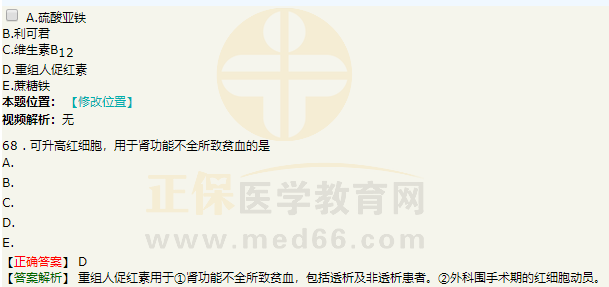 3、重組人促紅素的適應(yīng)證