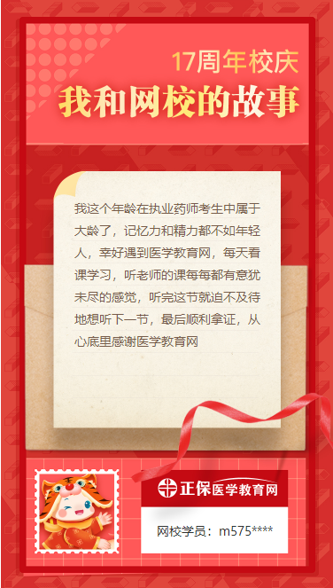- · 正保醫(yī)學教育網(wǎng)17周年校慶特輯::從藥師到醫(yī)師,與網(wǎng)校不離不棄