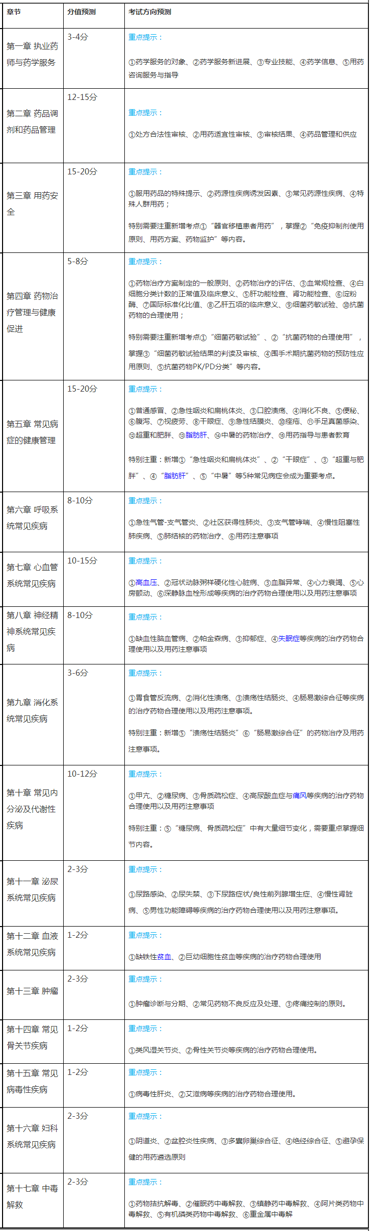 2020年執(zhí)業(yè)藥師考試大綱發(fā)生了比較大的變化,《藥學(xué)綜合知識(shí)與技能》教材內(nèi)容由原來的20章整合為17章,從今年的模擬試題目可以看出,17個(gè)章節(jié)的分值相比以前更均勻了,沒有出現(xiàn)20分以上的章節(jié),也沒有出現(xiàn)1分甚至0分的章節(jié),我們可以分為三個(gè)檔次“10分及以上章節(jié)”“5——10分章節(jié)”“5分及以下章節(jié)”。