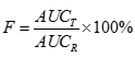 生物利用度 | 試驗制劑(T)與參比制劑(R)的血藥濃度-時間曲線下的面積的比率 當(dāng)參比制劑是靜脈注射劑時,得到的比率即為絕對生物利用度。 | 相對生物利用度: |