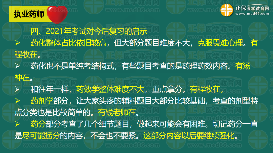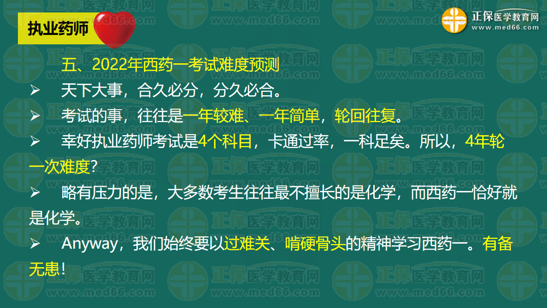 鑒于每年考試的難易程度沒有規(guī)律性(這兩年簡單,過去很多年都很難),備考的時候要求各位學員重點與細節(jié)兼顧。其中除重點章節(jié)外的其他章節(jié)主要關(guān)注重點考點,一般即使考試有難度的時候此部分章節(jié)還是考查常規(guī)考點。但對于重點章節(jié),這個就需要將教材的知識點吃透。廣大學員在復習的時候需要重點關(guān)注基礎(chǔ)課程與章節(jié)練習的復習。【查看2022年執(zhí)業(yè)藥師新課>>】