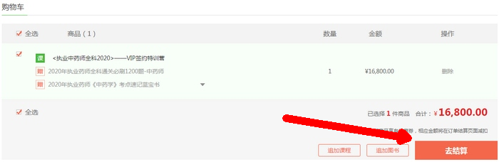 第二步:在購(gòu)物車內(nèi)確認(rèn)已選課程,確認(rèn)無誤后點(diǎn)擊“去結(jié)算”;