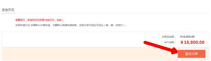 第三步:在訂單頁(yè)確認(rèn)無誤后,點(diǎn)擊“提交訂單”;