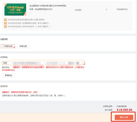 第二步:在購(gòu)物車內(nèi)確認(rèn)已選擇的課程,確認(rèn)無誤后點(diǎn)擊“提交訂單”;
