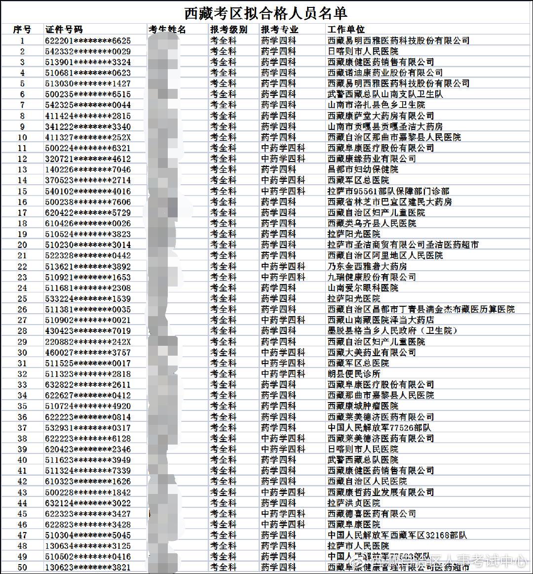 西藏2021年執(zhí)業(yè)藥師資格考試合格人員名單!101人合格!