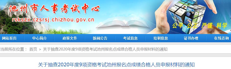 安徽池州關(guān)于抽查2020年執(zhí)業(yè)藥師池州報(bào)名點(diǎn)成績(jī)合格人員申報(bào)材料的通知