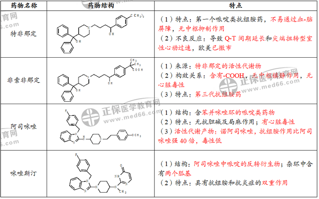 考點四、組胺H1受體阻斷劑抗過敏藥