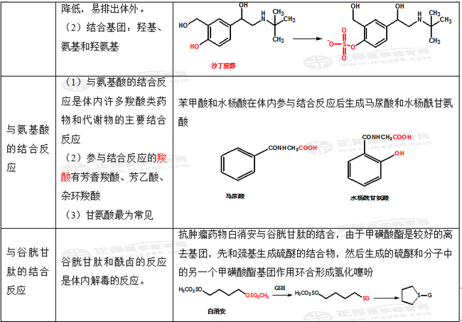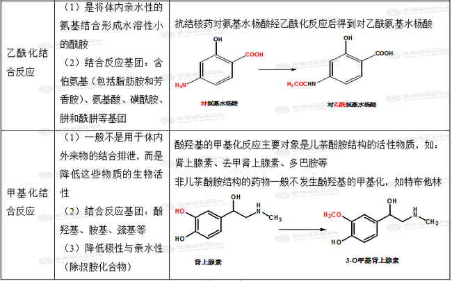 考點六、藥物結(jié)構(gòu)與第Ⅱ相生物轉(zhuǎn)化的規(guī)律