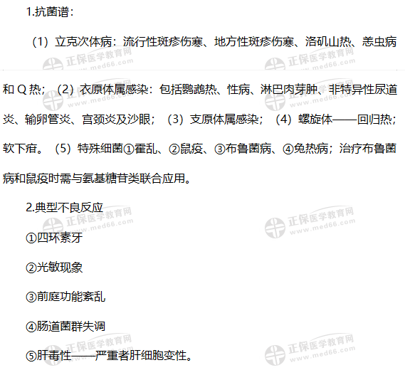 執(zhí)業(yè)藥師藥二知識點(diǎn)+習(xí)題練習(xí):四環(huán)素類抗菌藥物