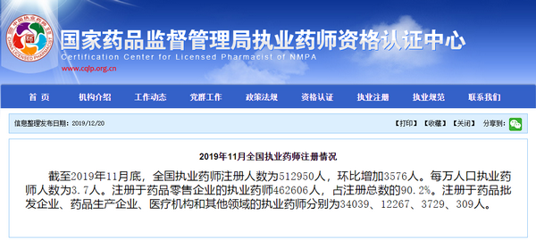 在12月20日,國(guó)家藥品監(jiān)督管理局發(fā)布了“2019年11月全國(guó)執(zhí)業(yè)藥師注冊(cè)情況”:截至2019年11月底,全國(guó)執(zhí)業(yè)藥師注冊(cè)人數(shù)為512950人,環(huán)比增加3576人。每萬(wàn)人口執(zhí)業(yè)藥師人數(shù)為3.7人。注冊(cè)于藥品零售企業(yè)的執(zhí)業(yè)藥師462606人,占注冊(cè)總數(shù)的90.2%。所以說(shuō),執(zhí)業(yè)藥師數(shù)量還遠(yuǎn)遠(yuǎn)不足,中??忌ゾo最后機(jī)會(huì)報(bào)考!