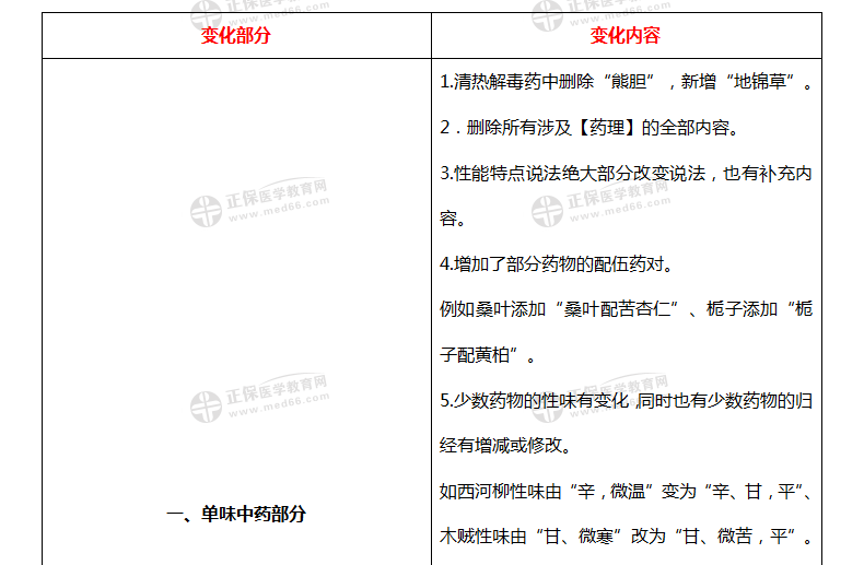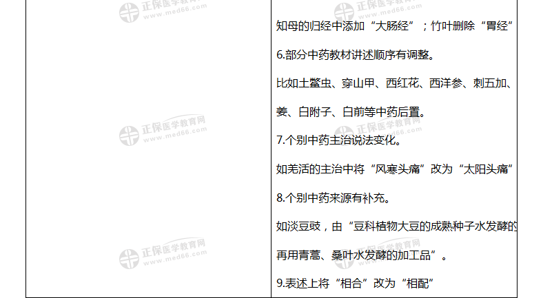 此次教材在細節(jié)變化較多,但往年的考試主體功效主治幾乎沒有變化。具體如下: