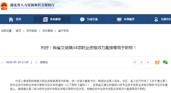 除了以上地區(qū),湖北省也有建立34項(xiàng)專業(yè)技術(shù)類職業(yè)資格與職稱對(duì)應(yīng)關(guān)系,已明確這些專業(yè)技術(shù)類職業(yè)資格等同于職稱。