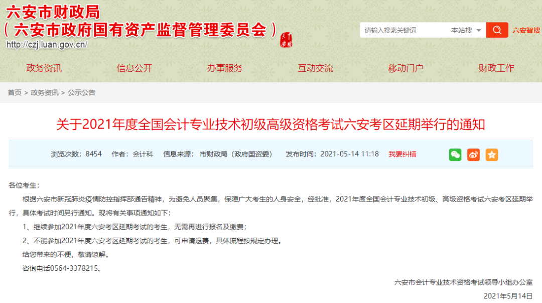 ▲ 2021年度全國會計專業(yè)技術(shù)初級、高級資格考試延考