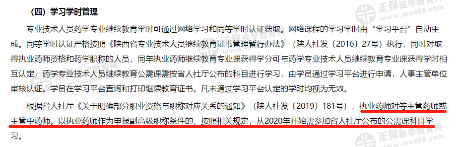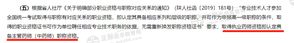 根據(jù)省人社廳《關(guān)于明確部分職業(yè)資格與職稱對(duì)應(yīng)關(guān)系的通知》(陜?nèi)松绨l(fā)〔2019〕181號(hào)),執(zhí)業(yè)藥師對(duì)等主管藥師或主管中藥師。以執(zhí)業(yè)藥師作為申報(bào)副高級(jí)職稱條件的,按照相關(guān)規(guī)定,從2020年開(kāi)始需參加省人社廳公布的公需課科目學(xué)習(xí)。