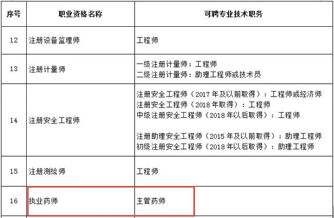 《安徽省關(guān)于在部分職業(yè)領(lǐng)域建立專業(yè)技術(shù)類職業(yè)資格和職稱對應(yīng)關(guān)系的指導(dǎo)意見(試行)》通知:國家職業(yè)資格制度中有明確規(guī)定,取得執(zhí)業(yè)藥師準入類職業(yè)資格的人員,用人單位可根據(jù)相關(guān)任職條件和崗位空缺情況聘任相應(yīng)的專業(yè)技術(shù)職務(wù)。