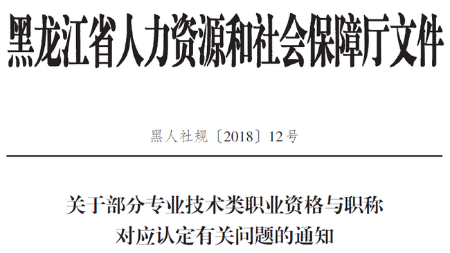 黑龍江人社局發(fā)布《關(guān)于部分專業(yè)技術(shù)類職業(yè)資格與職稱對應(yīng)認定有關(guān)問題的通知》通知:專業(yè)技術(shù)人員取得專業(yè)技術(shù)類職業(yè)資格,即可認定其具備相應(yīng)系列和層級的職稱,用人單位可根據(jù)本單位崗位任職條件和程序聘任其相應(yīng)的專業(yè)技術(shù)職務(wù),專業(yè)技術(shù)人員可據(jù)此作為申報高一級職稱的條件。