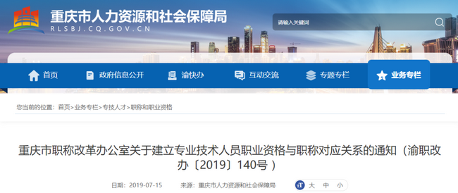 重慶市人社局發(fā)布《重慶市職稱改革辦公室關(guān)于建立專業(yè)技術(shù)人員職業(yè)資格與職稱對應(yīng)關(guān)系的通知》:在對應(yīng)關(guān)系范圍內(nèi),專業(yè)技術(shù)人員取得職業(yè)資格即可認定其具備相應(yīng)系列和層級的職稱,并可作為申報高一級職稱的條件。本市用人單位可根據(jù)工作需要,對符合對應(yīng)條件的人員按照相應(yīng)專業(yè)技術(shù)崗位任職條件和聘任程序,擇優(yōu)聘任到相應(yīng)系列和層級職稱的崗位。
