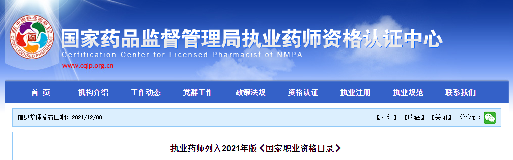 官方發(fā)文:執(zhí)業(yè)藥師列入2021年版《國家職業(yè)資格目錄》