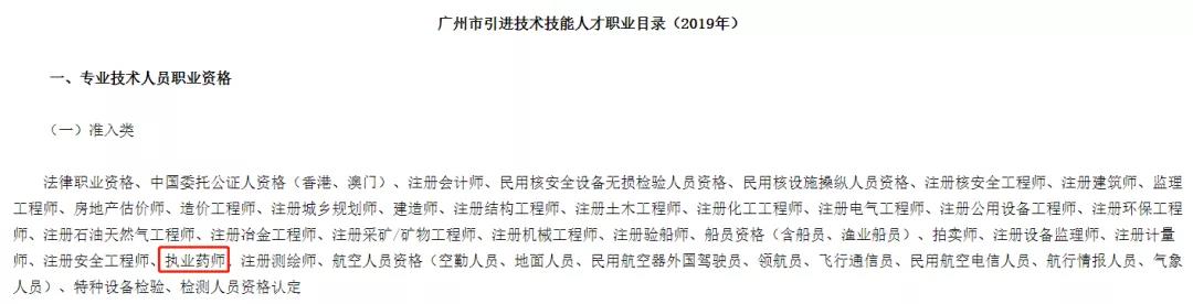 2019年廣州市人社局就發(fā)布過(guò)相關(guān)通知,表示“執(zhí)業(yè)藥師”被廣州市引進(jìn)技術(shù)技能人才職業(yè)目錄!