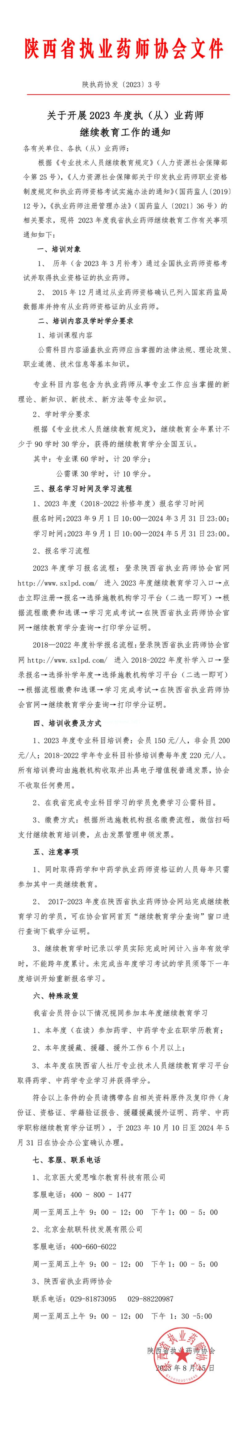 陜西2023年度執(zhí)(從)業(yè)藥師 繼續(xù)教育工作的通知