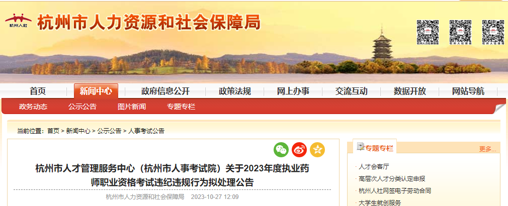 根據(jù)《專業(yè)技術(shù)人員資格考試違紀(jì)違規(guī)行為處理規(guī)定》(人力資源和社會保障部令第31號)第十七條規(guī)定,現(xiàn)將2023年度執(zhí)業(yè)藥師職業(yè)資格考試中已認(rèn)定違紀(jì)違規(guī)考生的考試違紀(jì)違規(guī)行為擬處理意見公告如下??忌鐚λJ(rèn)定的違紀(jì)違規(guī)事實及擬處理意見存在異議,可在公告之日起5個工作日內(nèi)提出陳述和申辯。逾期未提出陳述申辯的,將依法依規(guī)作出正式處理決定。