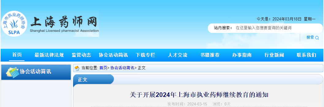 【上?!?024年上海市執(zhí)業(yè)藥師繼續(xù)教育通知