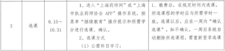 (2)參加繼續(xù)教育的時間和學時規(guī)定:執(zhí)業(yè)藥師應(yīng)當自取得執(zhí)業(yè)藥師職業(yè)資格證書的次年起開始參加繼續(xù)教育。每年參加的繼續(xù)教育不少于90學時。其中專業(yè)科目一般不少于總學時的三分之二。執(zhí)業(yè)藥師參加繼續(xù)教育實行學時登記管理,不再實行學分制。