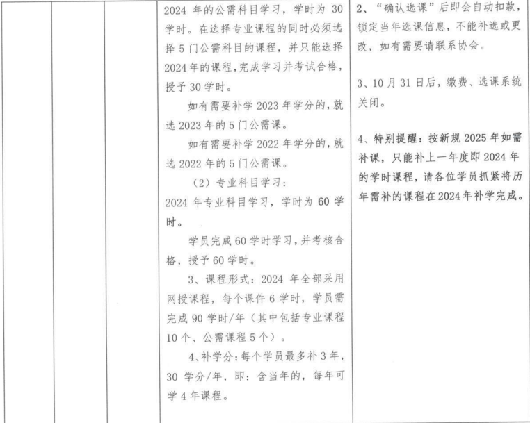 特別提醒:2025年如需補課,只能補上一年度即2024的學時課程。請各位學員根據(jù)此提醒抓緊將歷年需補的課程在2024年補學完成。