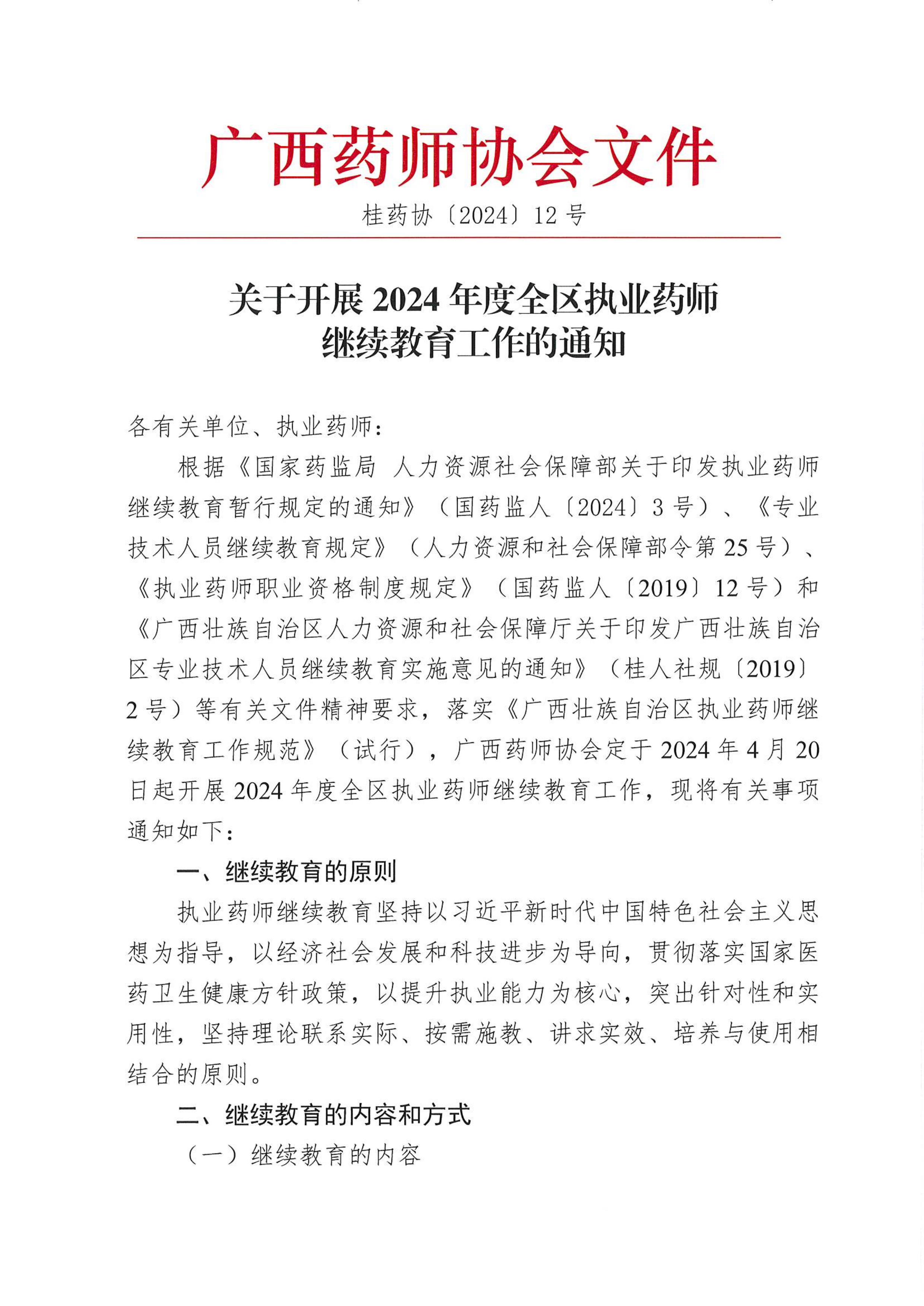 【廣西】關(guān)于開展2024年度全區(qū)執(zhí)業(yè)藥師繼續(xù)教育工作的通知