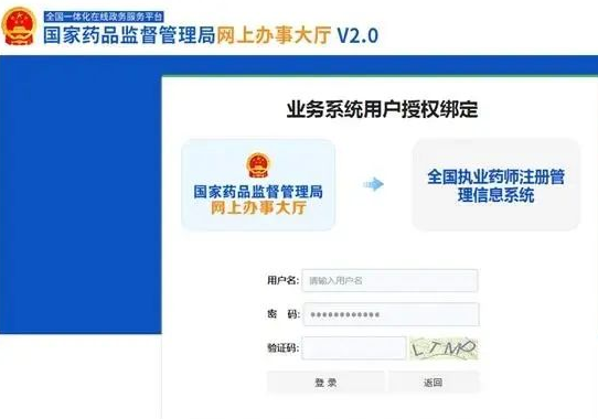 首次辦理執(zhí)業(yè)藥師注冊用戶,進(jìn)行業(yè)務(wù)系統(tǒng)用戶授權(quán)綁定,選擇“已有用戶的登錄授權(quán)”。