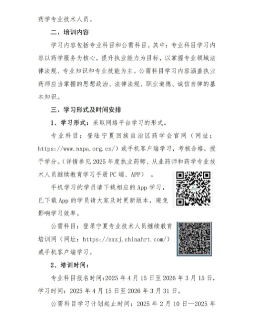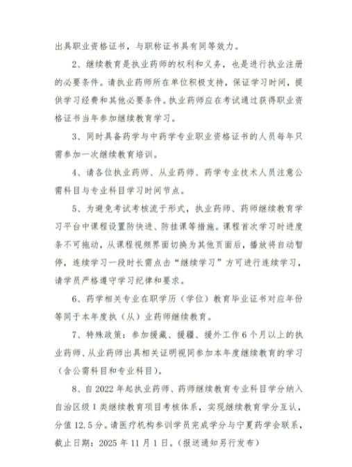 【寧夏】2025年度執(zhí)業(yè)藥師、從業(yè)藥師和藥學專業(yè)技術人員繼續(xù)教育的通知