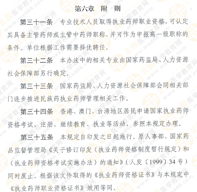 6、通過(guò)考試取得執(zhí)業(yè)藥師職業(yè)資格證書(shū),視為具備主管藥師或主管中藥師職稱(chēng)。