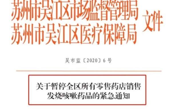 其實(shí)除了杭州市暫停向市民銷(xiāo)售說(shuō)明書(shū)上標(biāo)明“具有退燒、止咳”功能的藥之外,江蘇蘇州市吳江區(qū)、浙江金華市、山西侯馬市等地區(qū)的市場(chǎng)監(jiān)督管理局也發(fā)布了相關(guān)通知。