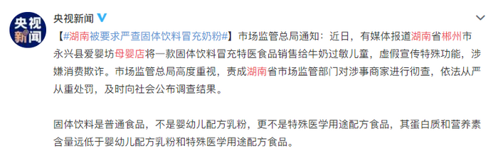 最近,關(guān)于“湖南郴州母嬰店將固體飲料當(dāng)特殊醫(yī)學(xué)配方奶粉出售導(dǎo)致嬰幼兒出現(xiàn)營(yíng)養(yǎng)不良、佝僂病等癥狀”事件引發(fā)了社會(huì)廣泛關(guān)注!