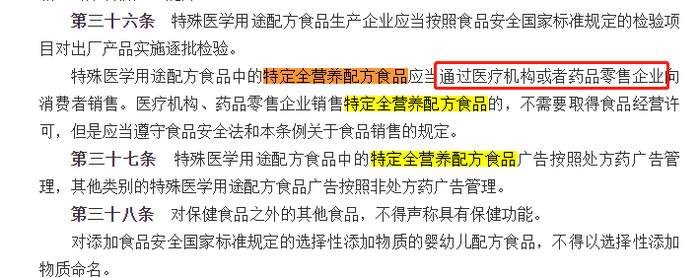 其實(shí)依據(jù)2019年12月實(shí)施的《食品安全法實(shí)施條例》規(guī)定,特定全營(yíng)養(yǎng)配方食品只能通過(guò)醫(yī)療機(jī)構(gòu)或藥店銷售。