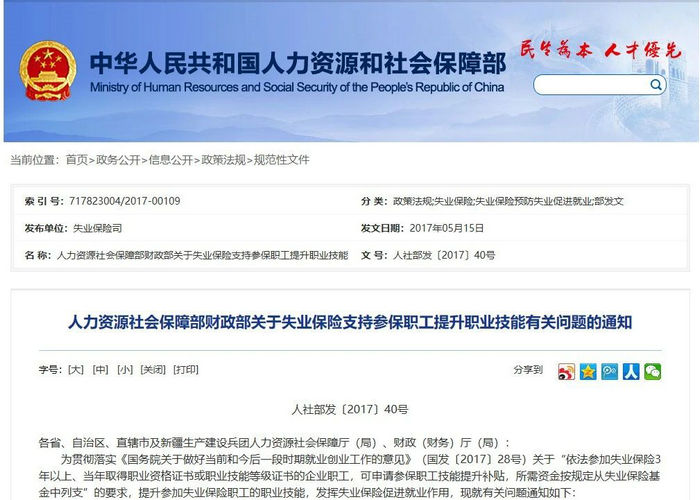 2017年5月15日,人社部發(fā)布《人力資源社會保障部財政部關于失業(yè)保險支持參保職工提升職業(yè)技能有關問題的通知》指出依法參加失業(yè)保險,累計繳納失業(yè)保險費36個月(含36個月)以上的,并且自2017年1月1日起取得初級(五級)、中級(四級)、高級(三級)職業(yè)資格證書或職業(yè)技能等級證書的人員,可根據(jù)職業(yè)資格等級領取不超過2000元的職業(yè)技能補助金。