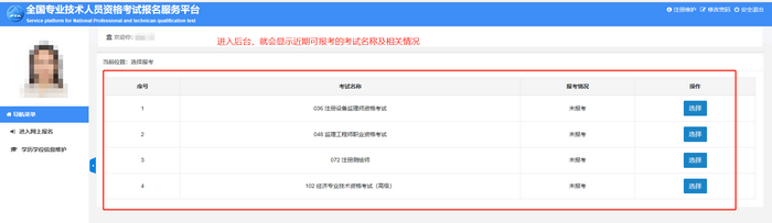 如果之前已經(jīng)上傳成功的,就會直接顯示近期準備報考的考試內容及相關信息。