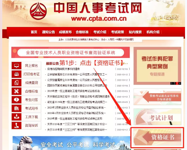 第1步:打開【人事考試網(wǎng)】,點(diǎn)擊【資格證書】