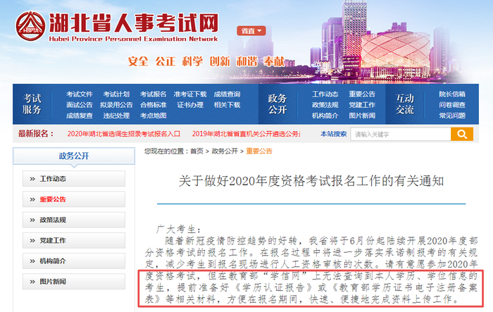 注意:以下是小編查找到的湖北省2020年報(bào)名相關(guān)通知,對(duì)于2021年無(wú)法查詢到本人學(xué)歷學(xué)位的考生同樣適用!
