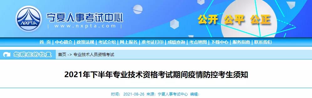 繼3月26日公布的防疫須知之后,8月26日,寧夏人事考試中心發(fā)布了《2021年下半年專業(yè)技術(shù)資格考試期間疫情防控考生須知》,重點內(nèi)容如下: