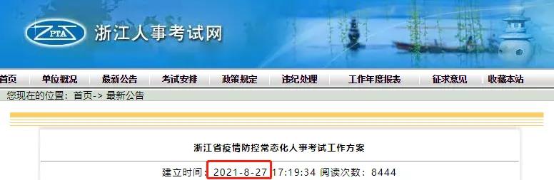 8月27日,浙江省再一次更新了《浙江省疫情防控常態(tài)化人事考試工作方案》。
