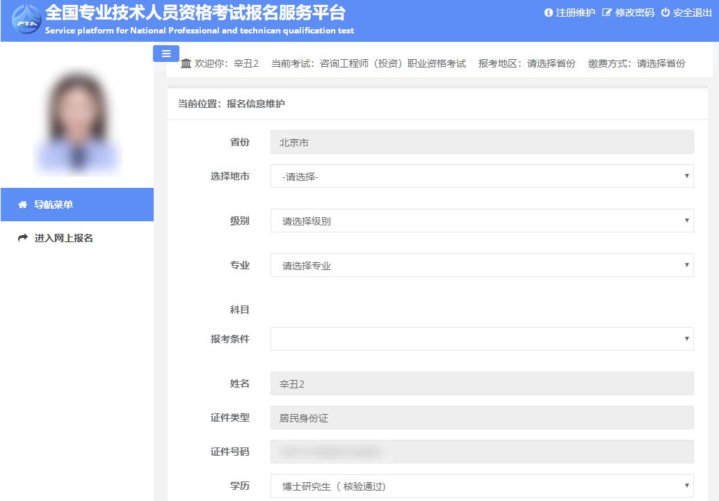 點(diǎn)擊【下一步】按鈕,進(jìn)入報(bào)名信息維護(hù)頁(yè)面,填寫報(bào)考信息。