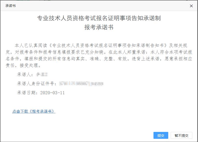 若選擇【暫不提交】,則中止報(bào)名。