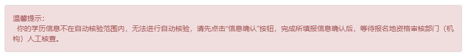 若注冊(cè)信息中的身份、學(xué)歷、學(xué)位還未通過核查,將彈出相應(yīng)的提示信息,完成核查后方可繼續(xù)報(bào)名。