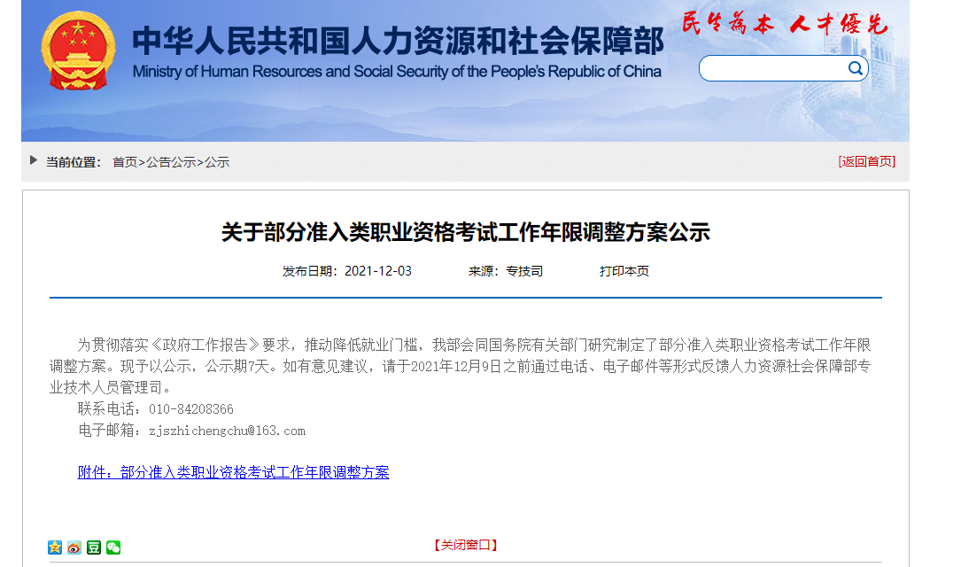 職業(yè)資格 | 實(shí)施部門(單位) | 現(xiàn)報考條件 | 調(diào)整后報考條件 |