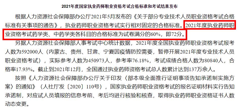 2021年度國(guó)家執(zhí)業(yè)藥師職業(yè)資格考試合格標(biāo)準(zhǔn)公布!