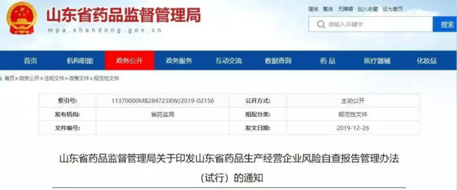 近日,山東省藥品監(jiān)督管理局印發(fā)《山東省藥品生產經營企業(yè)風險自查報告管理辦法(試行)》(以下簡稱《辦法》)。