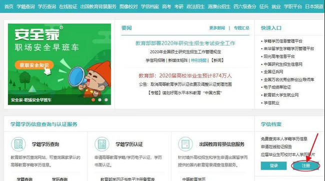 第一步:打開學(xué)信網(wǎng)官方網(wǎng)址,點(diǎn)擊右側(cè)的學(xué)信檔案注冊(cè)。