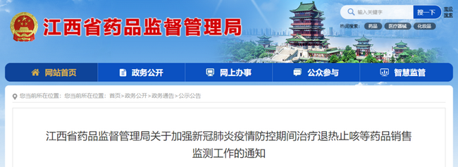 9月18日,江西省藥品監(jiān)督管理局發(fā)布了《江西省藥品監(jiān)督管理局關(guān)于加強(qiáng)新冠肺炎疫情防控期間治療退熱止咳等藥品銷售監(jiān)測工作的通知》(以下稱《通知》)。