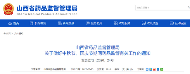9月25日,山西省藥監(jiān)局發(fā)布了《關(guān)于做好中秋節(jié)、國慶節(jié)期間藥品監(jiān)管有關(guān)工作的通知》(以下簡稱“通知”)。